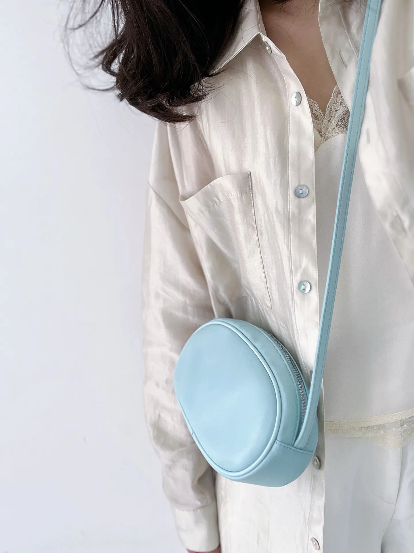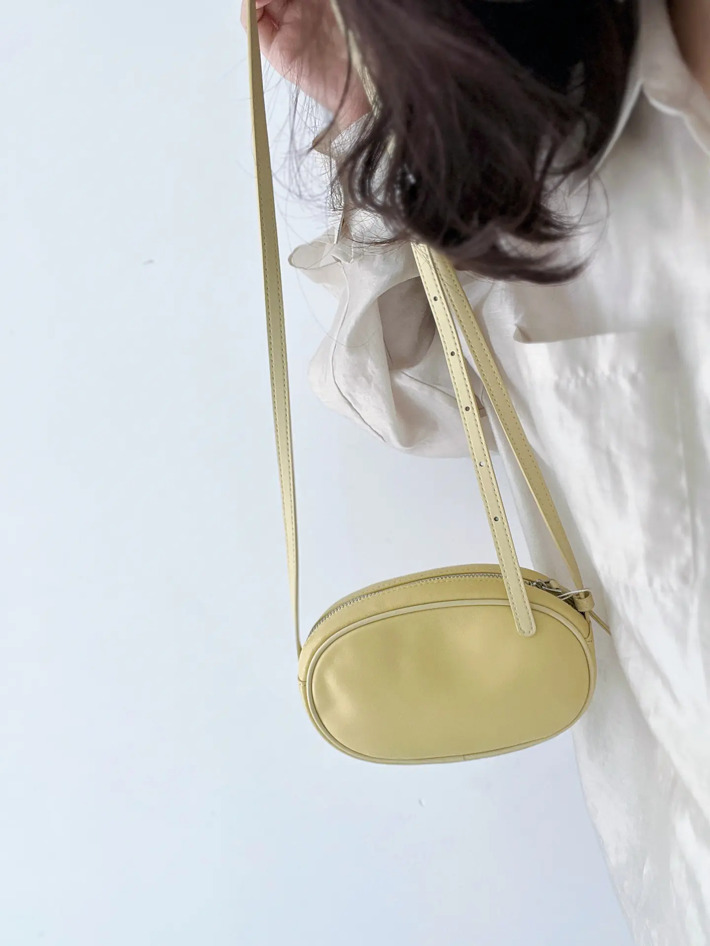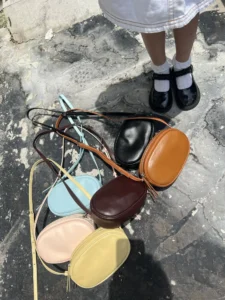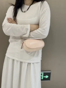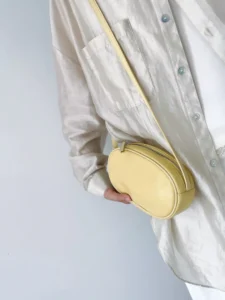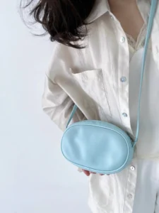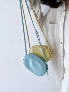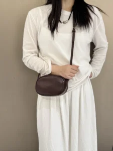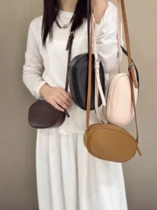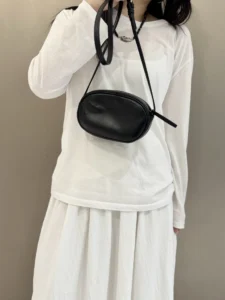 Korean version of a new limited-edition genuine leather oval crossbody bag for casual use, with a single shoulder strap, suitable for holding mobile phones
