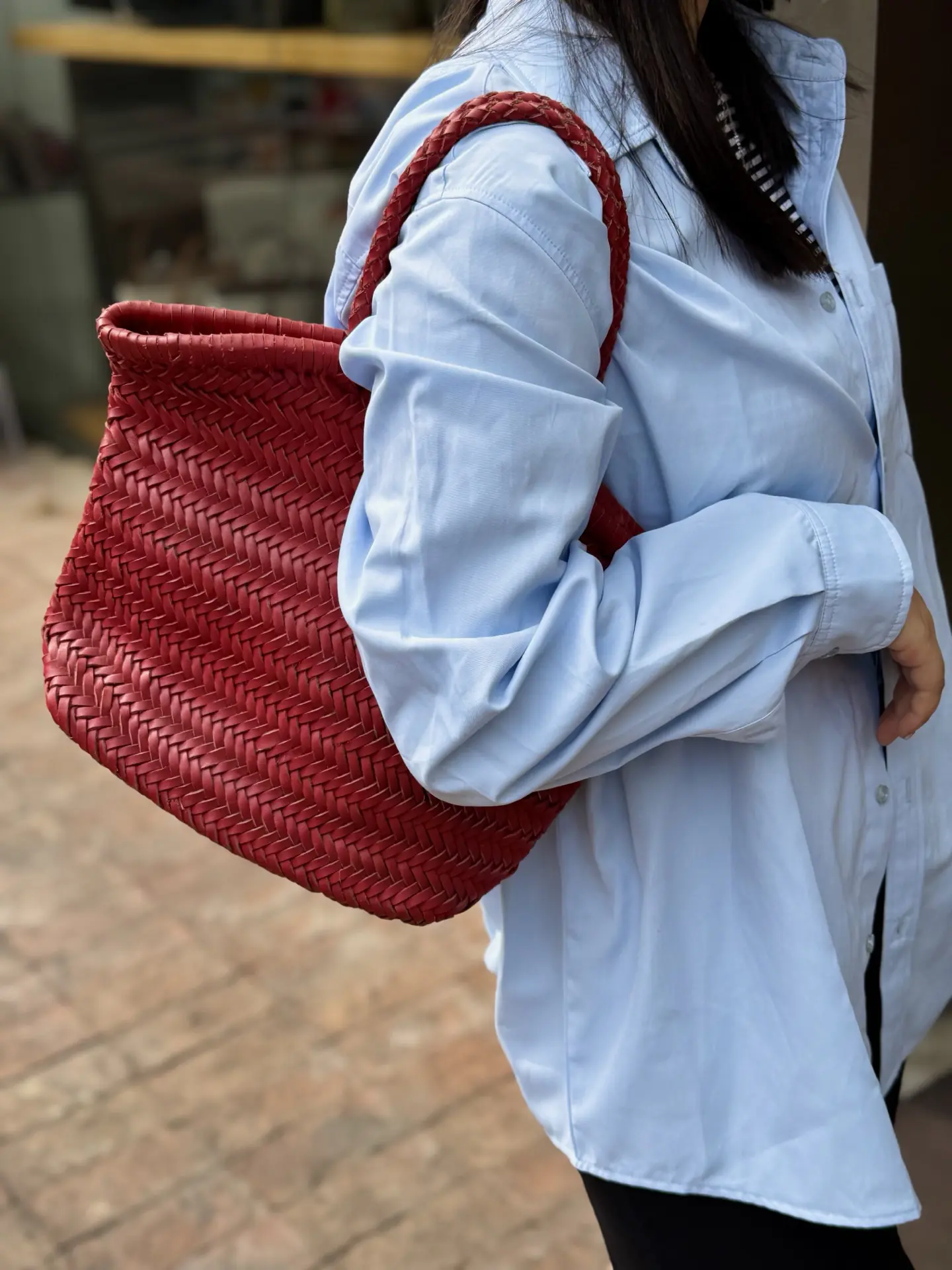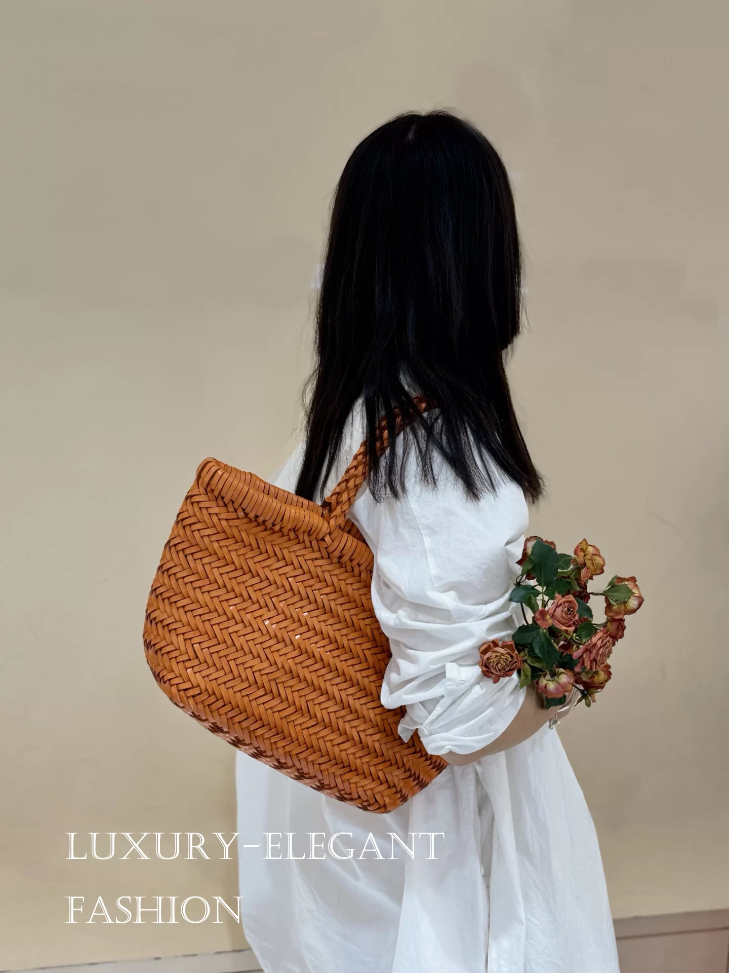 Wholesale and customization 2025 luxury design Handade Genuine leather woven Bag tote bag bucket purse